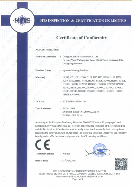 立臥式注塑機(jī)證書